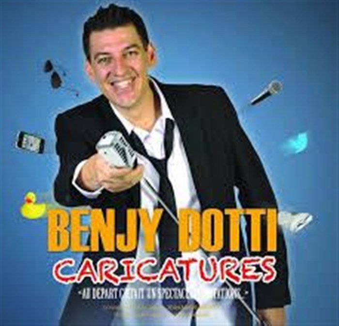 Dans ce nouveau spectacle Caricatures ! Benjy Dotti casse les codes et ose dépoussiérer le métier d'imitateur, il singe les artistes avec brio et décortique l'actualité pour toutes les générations confondues.