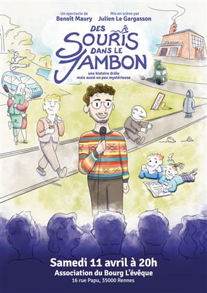 Découvre Benoît Maury dans Des souris dans le jambon, qui fait partie de notre sélection d’événements de type Mecs drôles et qui se tient ici : Association du Bourg L'Évêque -