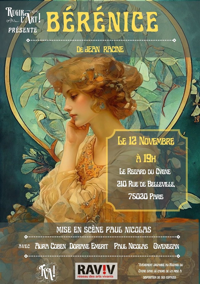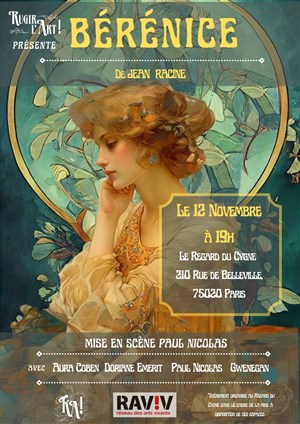 Excellente représentation de cette pièce de racine avec une Berenice totalement expressive !! D'une grande finesse, et d'un grand raffinement, digne d'une reine de Palestine, elle est accompagnée par Titus, très vraisemblable au physique ressemblant à l'original !! Comme d'habitude, chez Racine, Les serviteurs sont le maillon fondamental de la cohésion de l'intrigue et sont remarquablement joués par une seule actrice, qui varie son jeu en fonction de ces trois personnages. Antiochus Lui aussi est aussi pris par la passion, ce qui lui donne quelques hésitations normales en cette troisième représentation L'ensemble est parfait, et la langue de racine est totalement compréhensible. Bravo