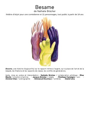 Besame est une histoire d'aujourd'hui sur notre rapport intime à l'argent, sur la place de l'art et de la beauté, les filiations et les rapports de classe, les conflits de générations.