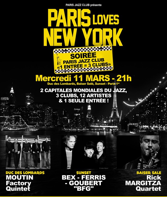 Paris Jazz Club présente " PARIS loves New York ": " 1 entrée = 3 clubs " Sunset – Le Baiser Salé – Duc des Lombards