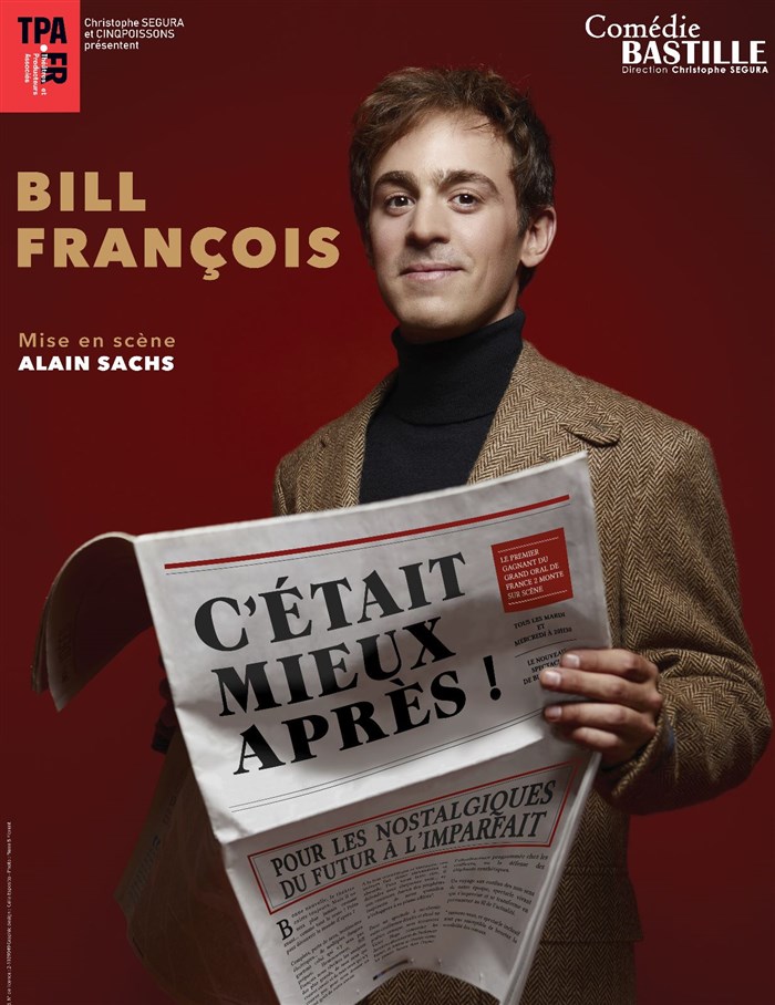 " C'était mieux après " explore les non-sens de notre époque, son passé et ses avenirs et jette un double regard de scientifique et d'humoriste sur toute notre humanité si souvent déshumanisée. Bill y conjugue absurde et réalité, alexandrins et actualités, dans un tourbillon désopilant.