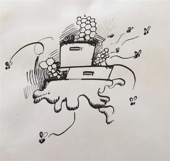 Mais Billy n'est jamais tout à fait seul, il y a toujours quelque chose qui l'attire ailleurs, toujours comme un bourdonnement dans sa tête, qu'il finit par écouter, toujours une abeille qui vient lui chuchoter de le suivre. Bzz Billybeille.