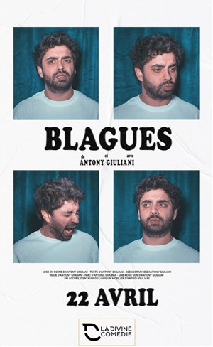 Découvre Antony Giuliani dans Blagues, qui fait partie de notre sélection d’événements de type Humour et qui se tient ici : La Divine Comédie -