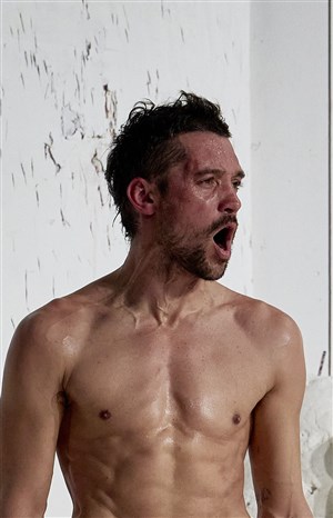 Placé au coeur d'un espace blanc immaculé, peuplé d'objets du quotidien, avec son coin cuisine, ses toilettes et son atelier d'artiste, il recrée sur scène un lieu de vie. Un espace qu'il transforme en un véritable laboratoire d'observation du vivant, du corps et de l'esprit. Là, il sonde l'intérieur de son être, sans oublier de faire usage de ses talents de jongleur. Il envoie promener dans les airs, au gré de ses humeurs, tasses à café, oranges, mots, clous, couteaux, mannequin, notes de musique...