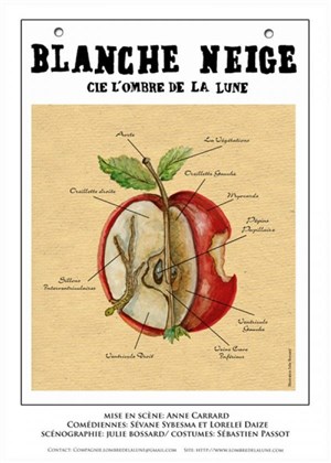 Deux petites bonnes femmes, des pommes plein les valises, préparent une compote. De pomme en pomme, la pomme est croquée, et Blanche-Neige naît.