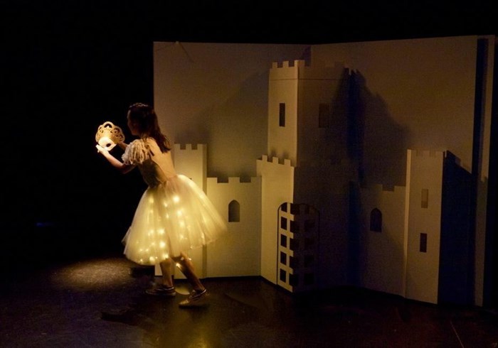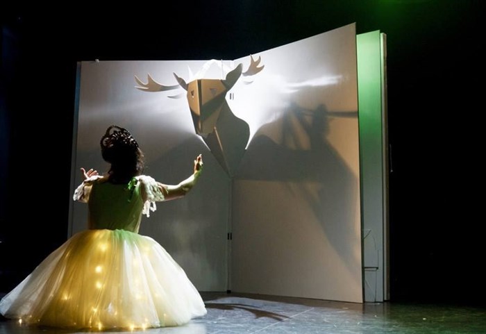 La poésie de la scénographie: un livre géant d'images en pop up, de la vidéo projection et une création lumière travaillant sur l'ombre portée.