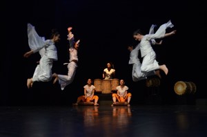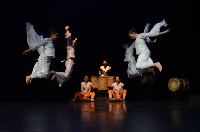 Spectacle "Aller simple" de la compagnie Dun Nyama, composée de sept danseuses et musiciennes et du talentueux artiste guinéen, Sory Diabaté.