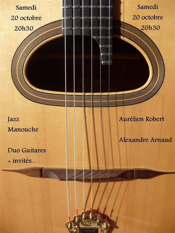 Boeuf Jazz Manouche, Jazz, Farid Bouziani et Alexandre Arnaud (guitares) + invités. Instruments à cordes amplifiés.