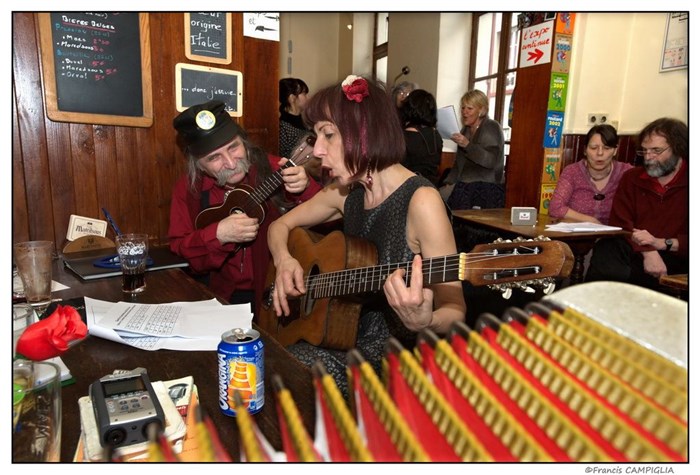 Venez écouter les valses et les javas à succès du Paris des années 20/30, au son des accordéons, banjos, guitares ... et pousser la chansonnette!