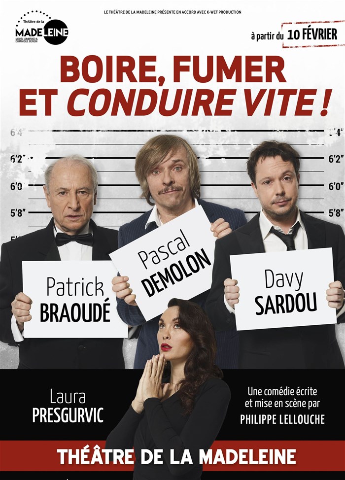 À propos de Boire, Fumer et Conduire Vite | avec Patrick Braoudé, Pascal Demolon, Laura Presgurvic et Davy Sardou