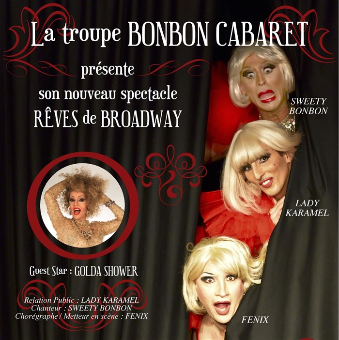 La Troupe Bonbon Cabaret vous attend dans sa Nouvelle Aventure "Rêves de Braodway" au Cabaret L'Artishow. En Guest , l'effervescente Golda Shower.