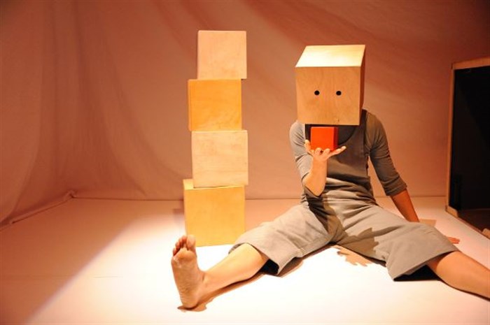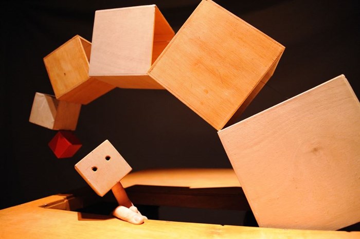 Le cube, élément commun dans le monde du tout petit, est ici accumulé, décliné puis détourné pour aborder la question de l'équilibre de façon drôle, surprenante et sensible. Entre marionnette et manipulation d'objets, BoOm propose une oeuvre visuelle et poétique adaptée aux très jeunes spectateurs.