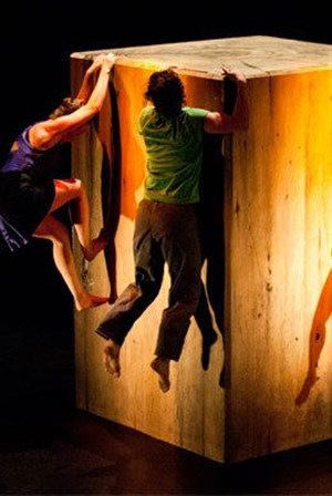 Puis Ils se confrontent à l'obstacle, l'accident, symbolisé par un caisson de percussion surdimensionné contre lequel ils s'écrasent ou s'époumonent avant d'en faire un allié et le gravir ensemble.