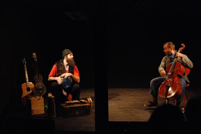 Sur la scène, pas de décors mais de nombreux instruments de musique sont éparpillés. La mise en scène privilégie les mots, le son, les bruits les gestes et les mimiques pour émoustiller l'imagination et l'écoute des tout-petits. C'est l'histoire d'un voyage initiatique conté avec dynamisme.
