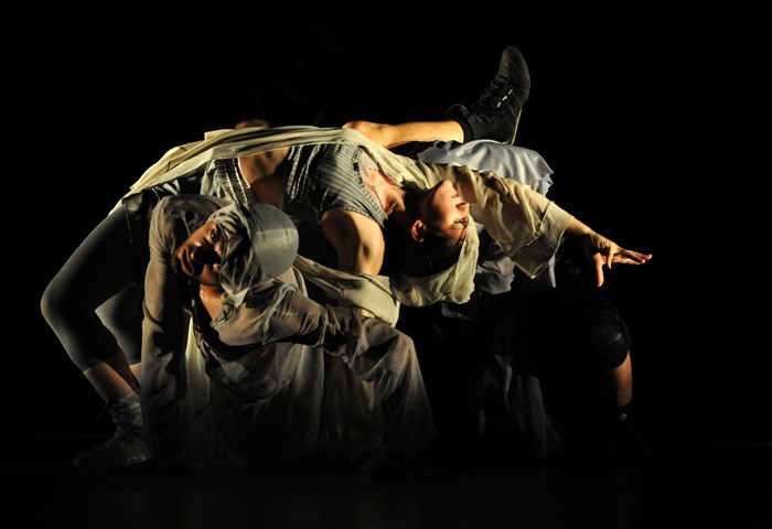 Une danse de groupe, surgie de la pénombre comme une séquence de film à l'ancienne, mélange les pinceaux hip-hop et ceux de la boxe avec vigueur.