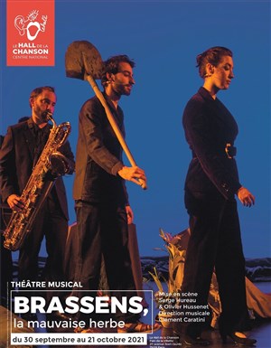 Brassens, La Mauvaise Herbe est porté par quatre jeunes chanteuses et chanteurs accompagnés de trois musiciens. Réinterprétant, avec sérieux et humour, une vingtaine d'oeuvres de Brassens, ce spectacle fait tomber les clichés attachés à l'homme pour faire réapparaître, à l'oreille comme à l'oeil, le génie de l'auteur-compositeur. Si Hureau et Hussenet ont choisi de donner à voir un cimetière (suggéré par quelques tissus jetés au sol), c'est que la force de son propos est d'oser nommer la fragilité de la vie humaine et l'urgence d'en jouir avant qu'il ne soit trop tard. C'est dans ces eaux dignes d'un Orphée triomphant où navigue le poète, dans un théâtre aux couleurs de l'Espagne et de l'Italie, avec leurs Matamores et Tartuffes démasqués, emportées dans ses valises à Paris pour les confronter aux figures des grisettes de la Bohème de Montmartre et des titis des faubourgs de Paris, que La mauvaise herbe nous entraîne.