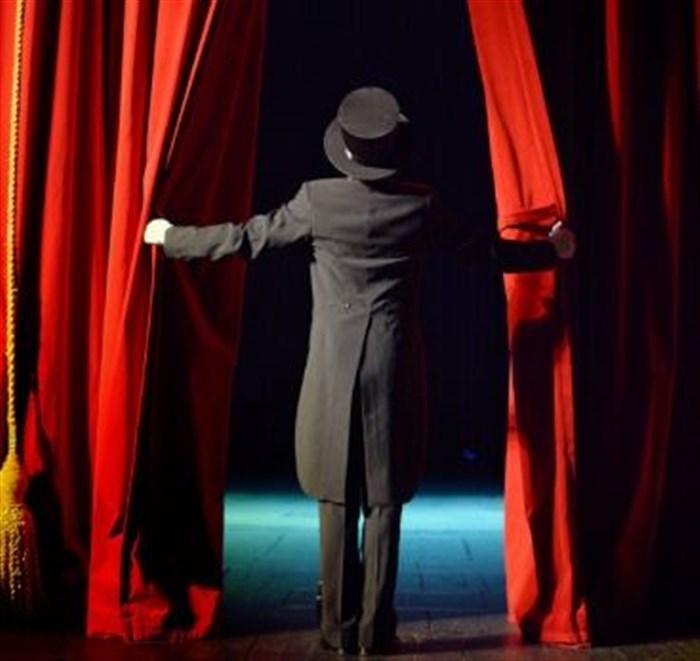 Le rideau vient de tomber sur scène, quelques spectateurs attendent dans