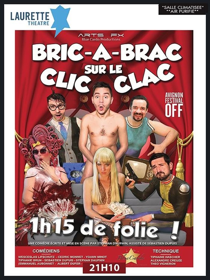 1h15 de folie ou 6 comédiens survoltés vous transportent dans une ambiance déchainée. Quiproquos, meurtre, embrouilles et de nombreux rebondissements à un rythme effréné, le tout autour d'un clic-clac