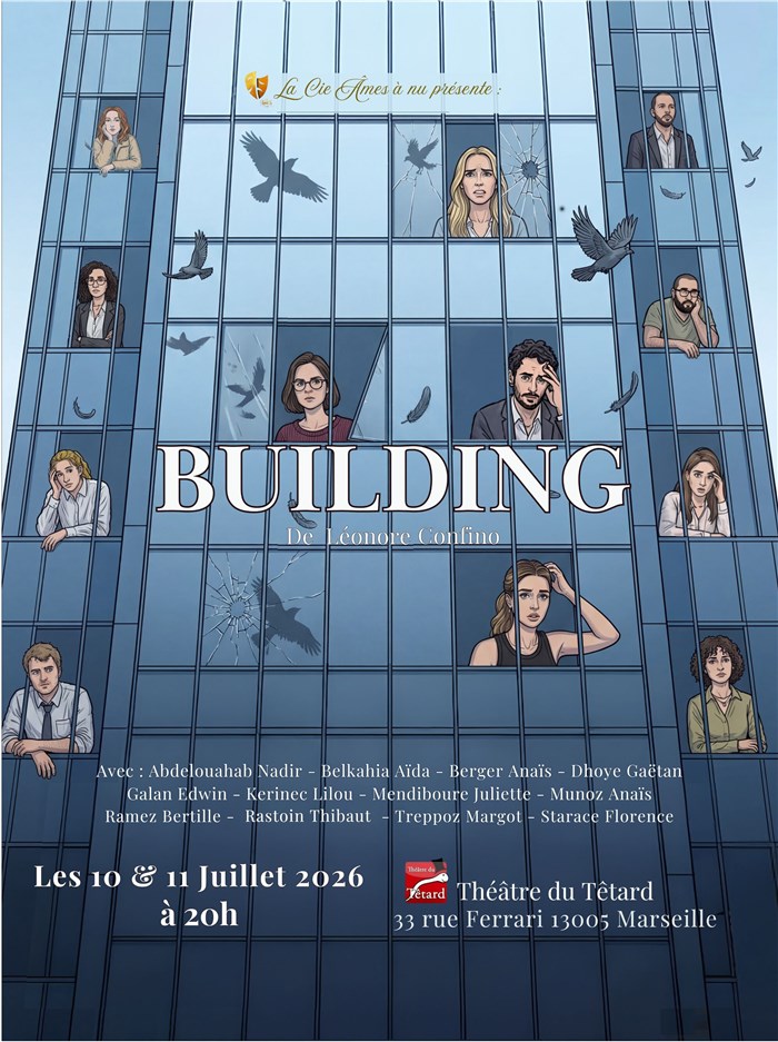 Building plonge dans l'univers implacable d'une grande entreprise où les salariés tentent de survivre, grimper, séduire, obéir ou résister. D'étage en étage, la pièce enchaîne des scènes aussi drôles que cruelles et dresse le portrait d'un monde du travail absurde, déshumanisé et férocement compétitif. Derrière l'humour et la satire, Building raconte la violence ordinaire du management, la solitude des individus et la mécanique infernale d'un système qui broie les corps et les âmes.