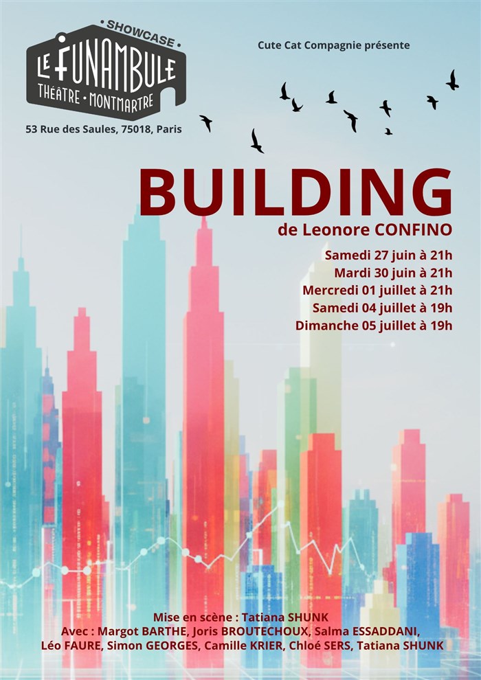 Découvre Building, qui fait partie de notre sélection d’événements de type Comédie contemporaine et qui se tient ici : Le Funambule Montmartre -
