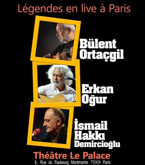 L’événement Bülent Ortaçgil + Erkan Ogur + Ismail Hakki Demircioglu | Les Voix de l'Anatolie de type Musique du monde, organisé ici :