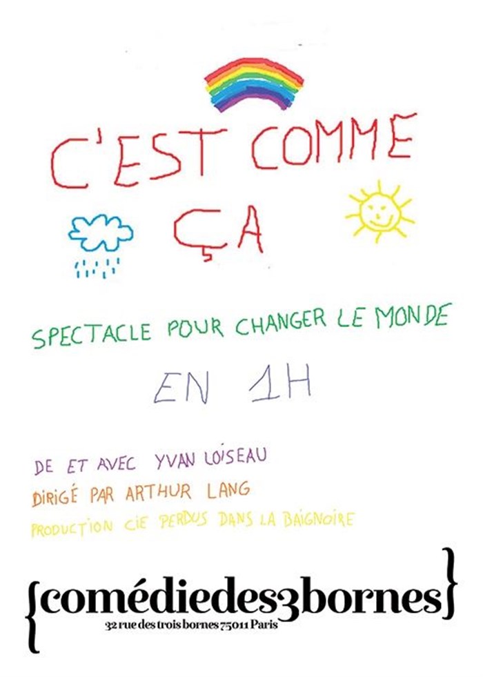 C'est comme ça – Spectacle pour changer le monde en 1h est un spectacle qui comme son nom l'indique, est fait pour changer le monde. A travers des exemples concrets de la vie quotidienne, Yvan Loiseau fait une liste de choses simples que nous pourrions changer pour changer le monde. Comment pourrions-nous agir ? Entre poésie, humour noir, naïveté et foi en l'humanité, ce seul en scène est fait pour tout changer – en mieux.