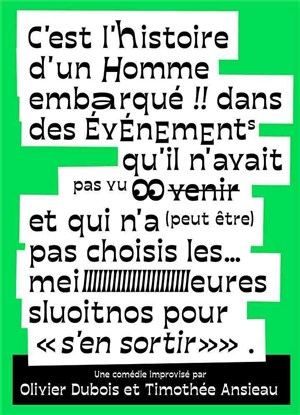 "C'est l'histoire d'un homme embarqué dans des événements qu'il n'avait pas vus venir et qui n'a peut–être pas choisi les meilleures solutions pour s'en sortir" est une comédie improvisée par Olivier Dubois et Timothée Ansieau.