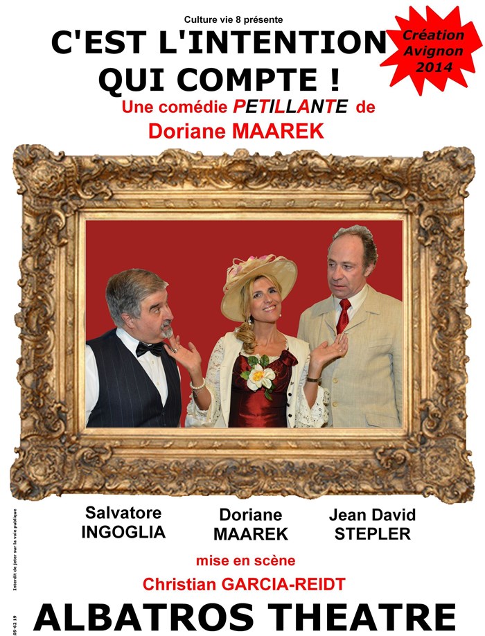 Doriane Maarek a écrit une pièce qui fait mouche alliant style intelligence et humour. " C'est l'intention qui compte " un petit bijou d'humour et de délicatesse...Un régal !!!! (Christian Garcia reidt)..