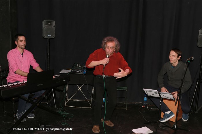 André Bonhomme en compagnie d'Emmanuel Bonhomme (au piano) et de Florent Jouffroy (flûtes et cajon) dans leur nouveau spectacle :