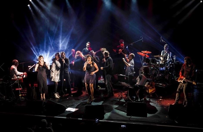 Ils sont quinze en scène (onze chanteuses et chanteurs et quatre