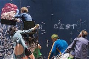 Un seul mot d'ordre ici : s'emparer de pinceaux, de ciseaux, de marteaux, de poésie, de clous et de colle et être libre ! Un comédien et deux comédiennes occupent l'espace, le réinventent, à grand renfort de peinture et de joie qui gicle. À travers un chaos de situations, d'outils, de couleurs et de danses, Ça Dada résonne avec la tendance naturelle des enfants à utiliser tout ce qui est à leur portée pour créer : une invitation pour tous les âges à détruire un vieux monde, pour mieux le reconstruire.