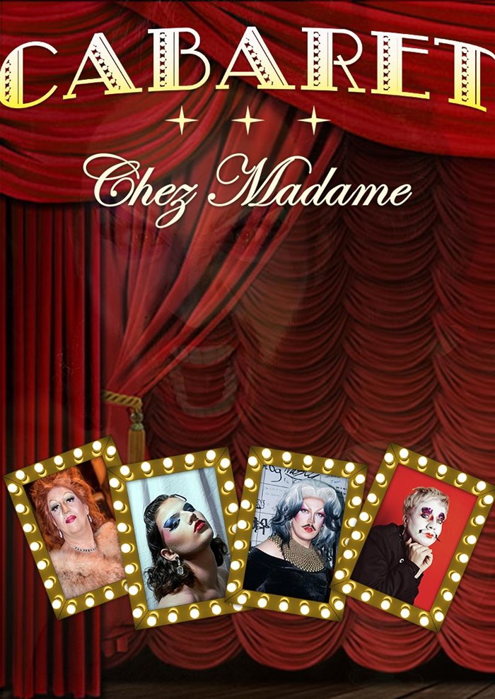 Un cabaret improvisé. Madame vous ouvre les portes de son cabaret et vous présente ses fantastiques artistes drag d'ici et d'ailleurs.