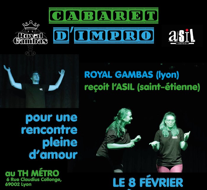 La troupe d'improvisation Royal Gambas a le plaisir d'accueillir la troupe de Saint Etienne l'ASIL pour un superbe spectacle d'improvisation !