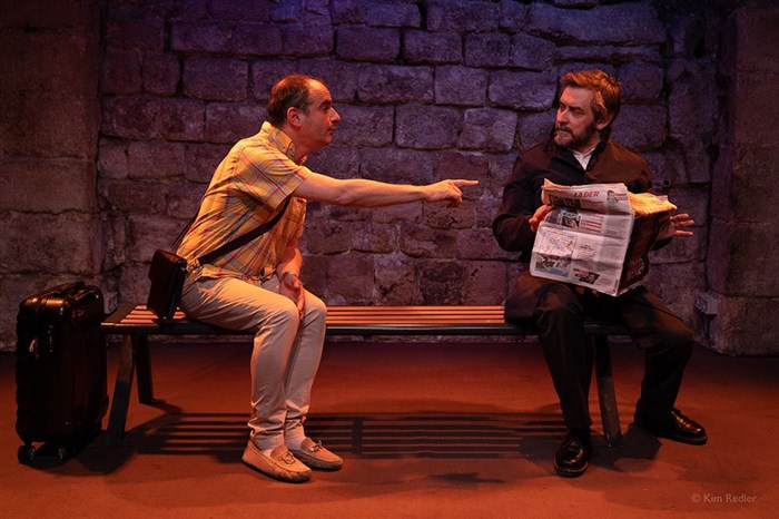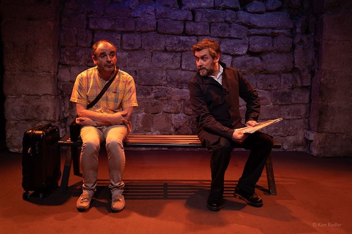 Très tôt le matin dans le hall d'une gare encore déserte, deux hommes qui ne se connaissent pas attendent leurs trains.