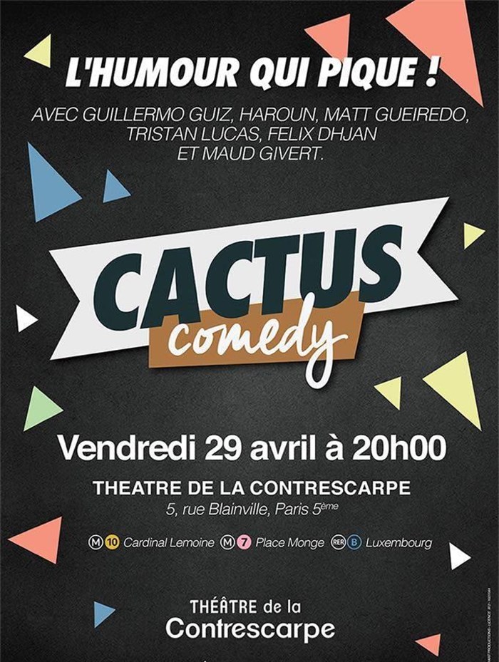 6ème édition à Paris de Cactus comedy, le nouveau concept de plateau dédié à l'Humour qui pique, lancé en octobre 2015.