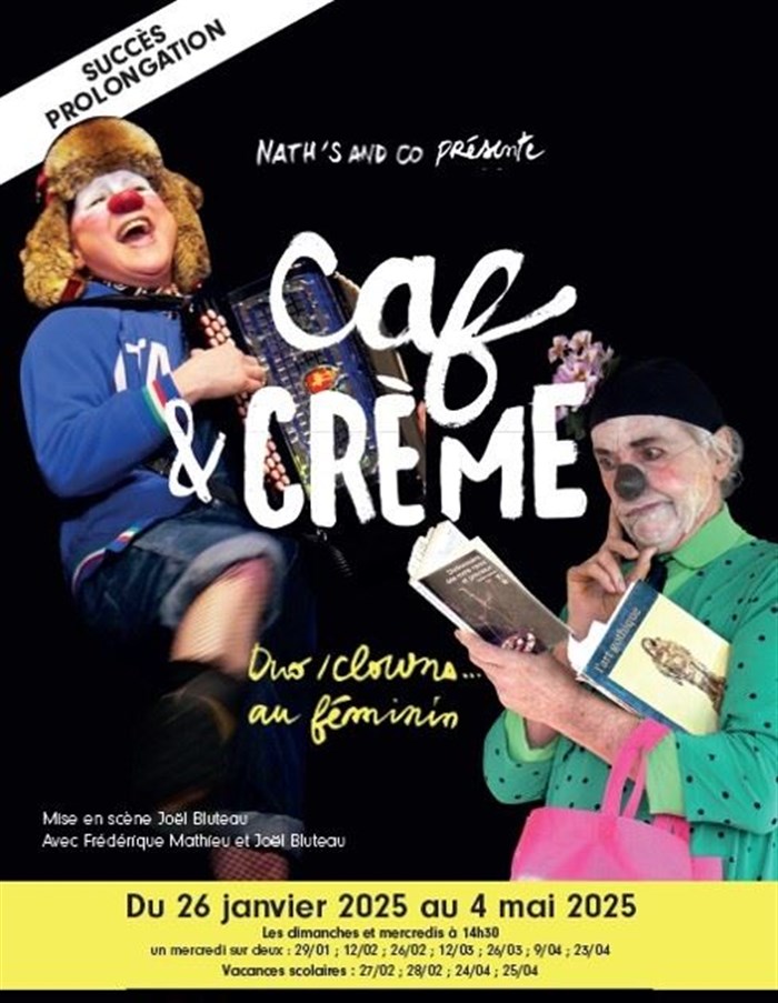 Un duo de clowns complètement loufoques, touchants et débordants d'énergie ! Entre musique, danse et rires, le spectacle Caf et Crème est une véritable bouffée de fantaisie pour petits et grands qui nous entraîne dans un univers drôle, délicat et étonnamment profond. Les enfants rient, participent, et les adultes se laissent emporter par leur sincérité et leur folie douce. Bravo aux deux comédiennes incroyables pour ce moment unique. A voir, ne le manquez pas !