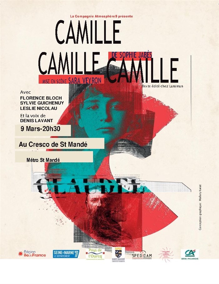 Trois "Camille" comme un miroir à trois faces, un prisme à trois dimensions qui propulse les forces en puissance dans un jeu d'équilibre psychologique où les comédiennes se soutiennent, en même temps que Camille invoque Camille, ou Camille. Un théâtre, où l'intime exposé, à nu, rejoint des sentiments universels, où la matière fait écho à l'état des comédiennes tout leur en servant de support de jeu. Visions scénographiques : un espace avec une division géométrique en format cinémascope. Le premier plan est celui de l'hôpital, le second plan est celui de l'atelier de Camille, et le troisième celui de l'atelier de Rodin. Au-delà, il reste deux espaces : celui de l'absence et celui des annonces, où le choeur dans une représentation magnétique de marionnettes à visages sculptées, apparaîtra ou disparaîtra, entre la figure du peuple et celle de l'augure. Cette présence renforcera non seulement la tragédie, mais elle permettra de sonder l'âme de Camille en même temps que la nôtre, avec une recherche sonore originale.