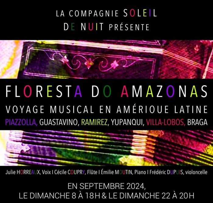 Cançoes da foresta do Amazonas vous emmène, du fleuve Amazone à la cordillère des Andes, à la découverte des compositeurs de musique classique latino-américaine, de Villa-Lobos à Piazzolla, en passant par Ariel Ramirez, Carlos Guastavino, Ernani Braga, Jaime Leon et quelques autres encore...
