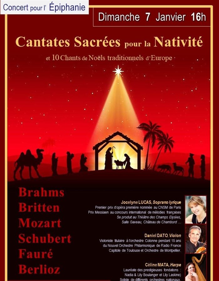 L’événement Cantates Sacrées pour la Nativité : Soprano, Violon, Harpe de type Musique classique, organisé ici :