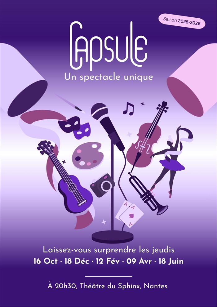 Découvre Capsule, qui fait partie de notre sélection d’événements de type plateau d'artistes et qui se tient ici : Théâtre du Sphinx -