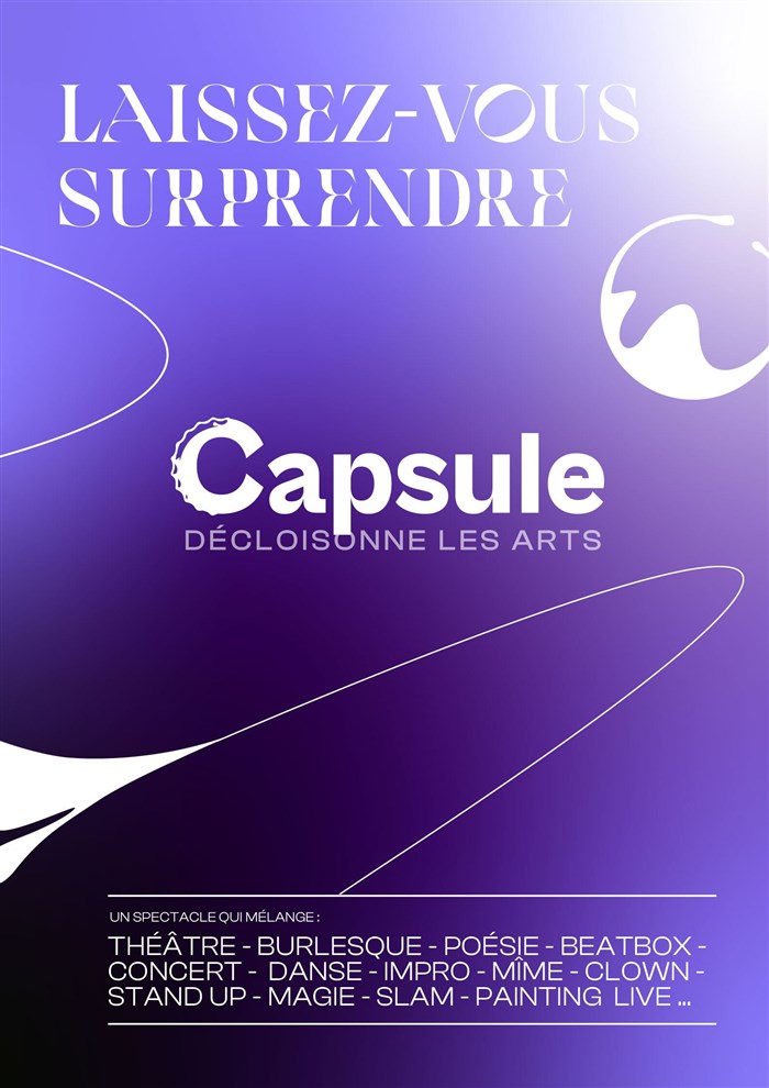 Capsule, c'est le spectacle qui mélange et décloisonne les arts. La programmation est différente à chaque représentation et l'on vous fait la surprise de la dévoiler seulement sur place pour vous proposer un spectacle unique.