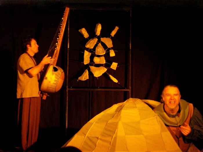 Quelques sons aquatiques et apparaît... une tête, puis une main, un musicien, un conteur, une chanson.