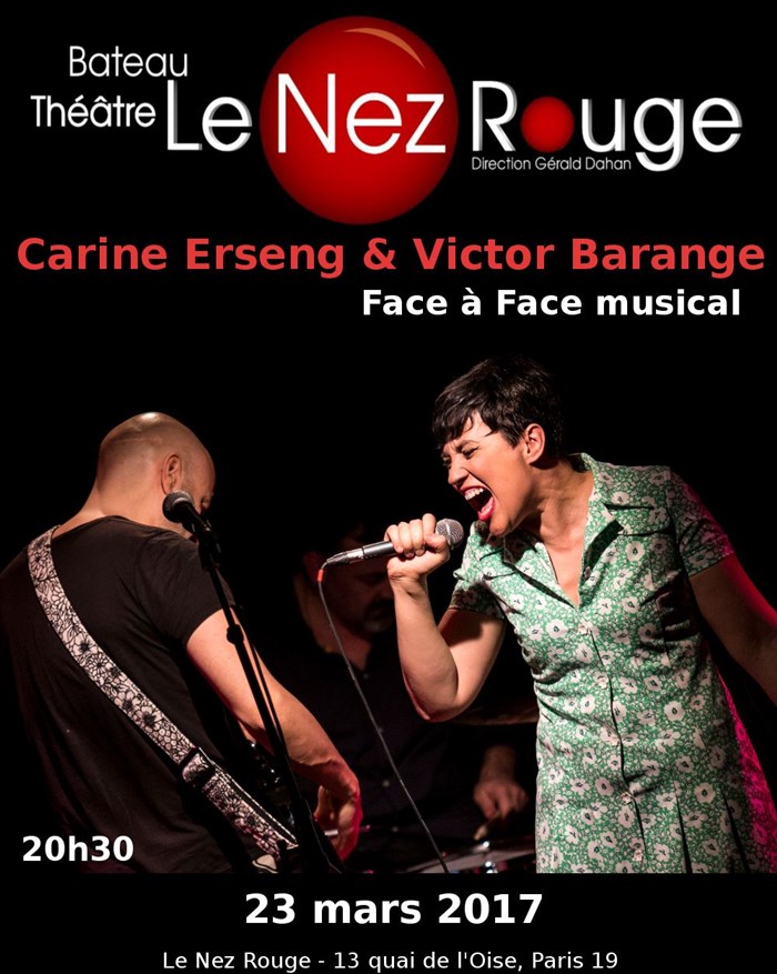 Vous allez assister à une mise en scène unique : les deux artistes Carine Erseng et Victor Barange, dialoguent en chansons ... Un concert questions-réponses remarquable.