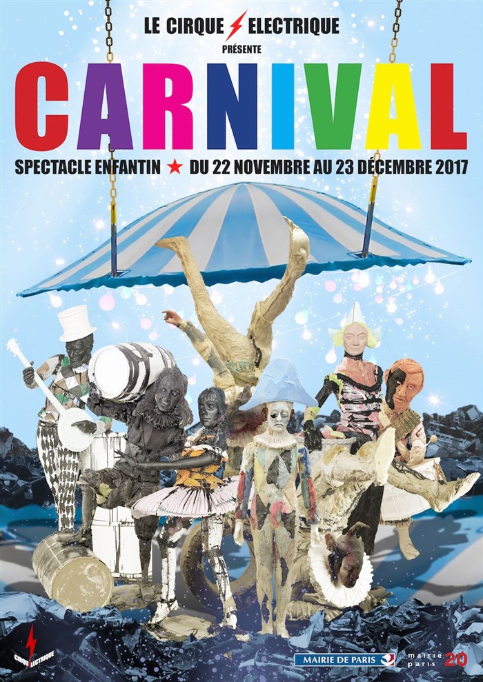 Carnival est la nouvelle création enfantine du Cirque Electrique. Un conte de cirque avec des personnages grotesques faits de plastique, pantins de colle et de pétrole d'or. Un cirque automate où fildeféristes, jongleurs, contorsionnistes, clowns, trapézistes, roue Cyr... se jouent d'un manège d'animaux en toc. De la musique mécanique interprétée par deux musiciens entourés par un orchestre de mannequins arlequin. Un conte désuet et pastel. Une note de peinture. Une fête foraine pixel. Un hymme aux saltimbanques.