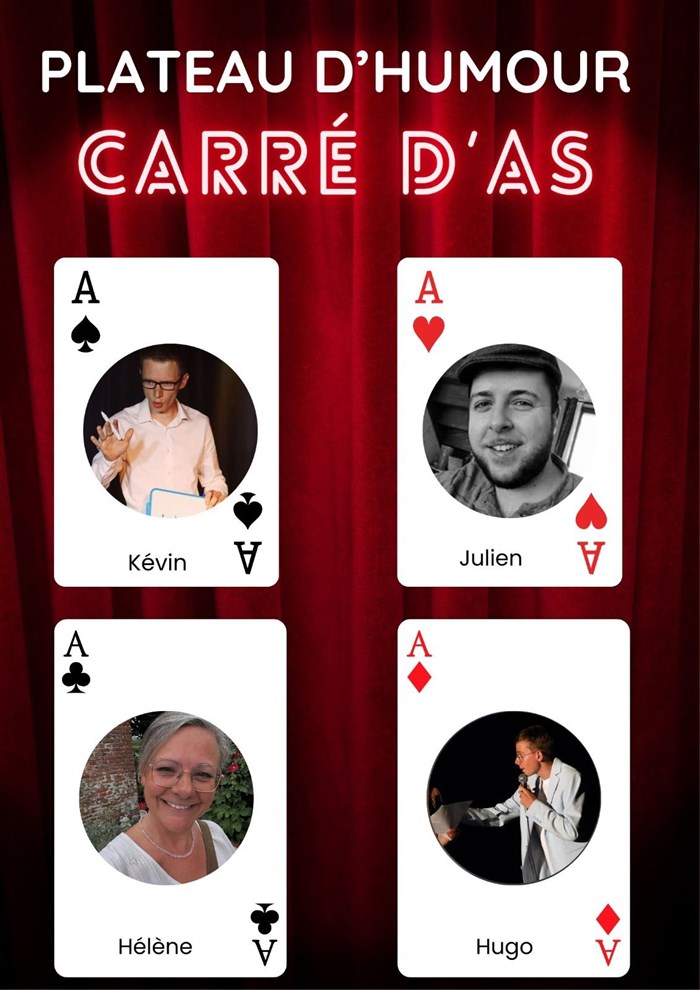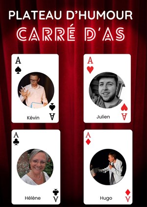 Découvre Carré d'as humoristique, qui fait partie de notre sélection d’événements de type Plateau d'humoristes et qui se tient ici : Bar à Rire Théâtre -