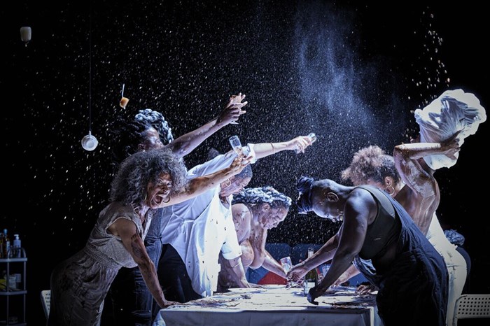 on peut ainsi décrire, plastiquement, la mise en scène de Rébecca Chaillon. Corps noirs sur fond blanc : cela vaudrait aussi pour la manière dont s'est racontée l'Histoire, au fil de siècles d'esclavage et de colonisation, avec leur cortège d'images et de représentations. Mettant son propre corps au centre, Rébecca Chaillon (qui se décrit comme une femme, noire, grosse, lesbienne) entreprend dans cette pièce une traversée des clichés, comme Alice traverse les miroirs.