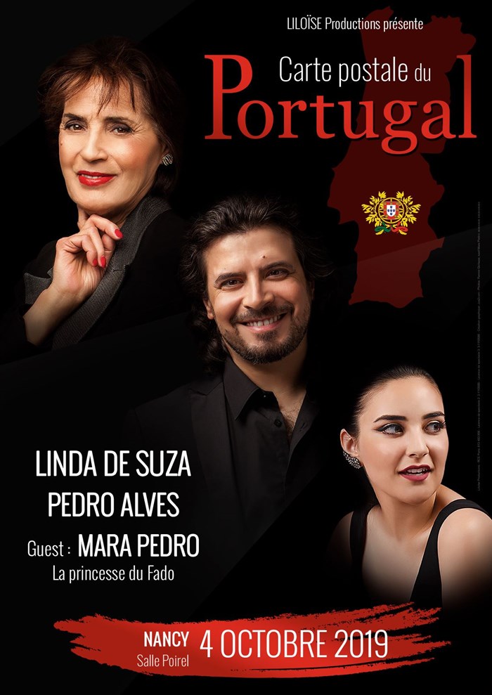 Cette carte postale du Portugal sera signée par un groupe de 5 musiciens, et portée sur scène par Pedro Alves, la voix portugaise de France, tête d'affiche du spectacle musical "Les dix commandements", la jeune fadiste Mara Pedro- la princesse du fado - qui à 19 ans a déjà un Internacional Portuguese Music Awards et vient de sortir son 4ème album chez Sony Portugal, et par Linda de Suza, la star aux multiples succès, légende vivante de la communauté portugaise qui fêtera ses 40 ans de carrière avec vous !