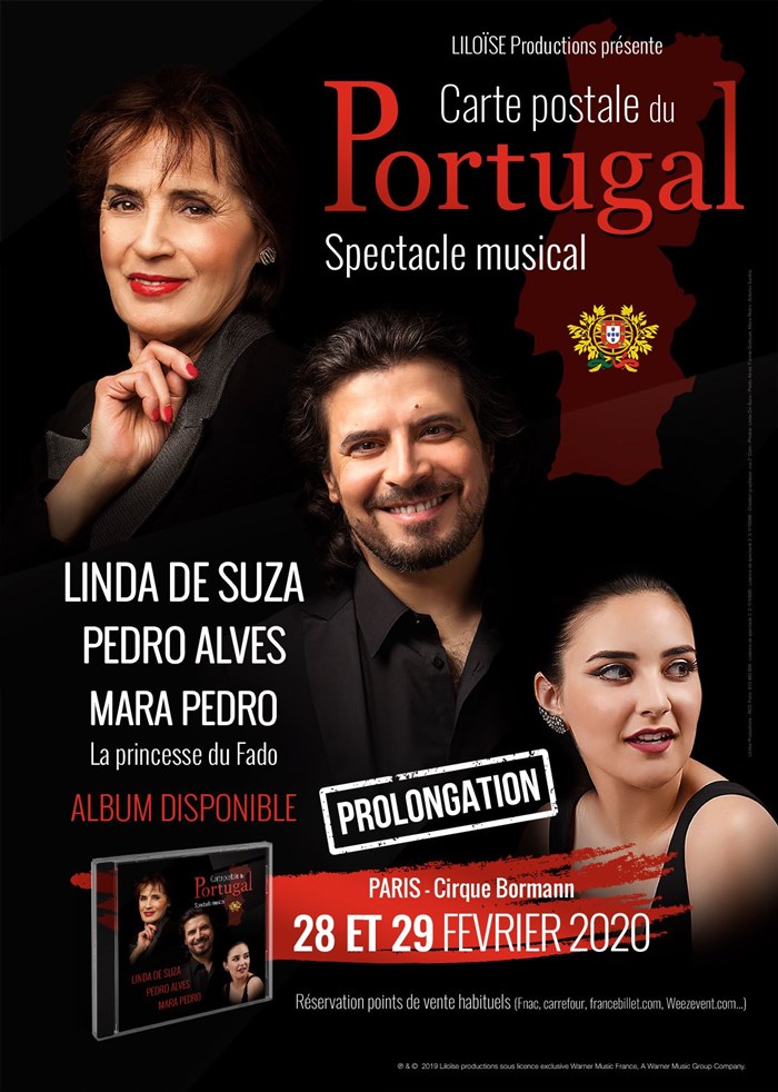 Cette carte postale du Portugal sera signée par un groupe de 5 musiciens, et portée sur scène par Pedro Alves, la voix portugaise de France, tête d'affiche du spectacle musical "Les dix commandements", la jeune fadiste Mara Pedro- la princesse du fado - qui à 19 ans a déjà un Internacional Portuguese Music Awards et vient de sortir son 4ème album chez Sony Portugal, et par Linda de Suza, la star aux multiples succès, légende vivante de la communauté portugaise qui fêtera ses 40 ans de carrière avec vous !
