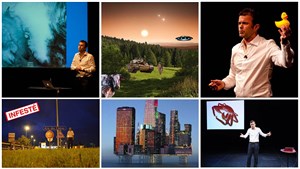 Frédéric Ferrer est auteur, géographe et acteur. Il construit des conférences théâtrales qui font le pont entre théâtre et science.